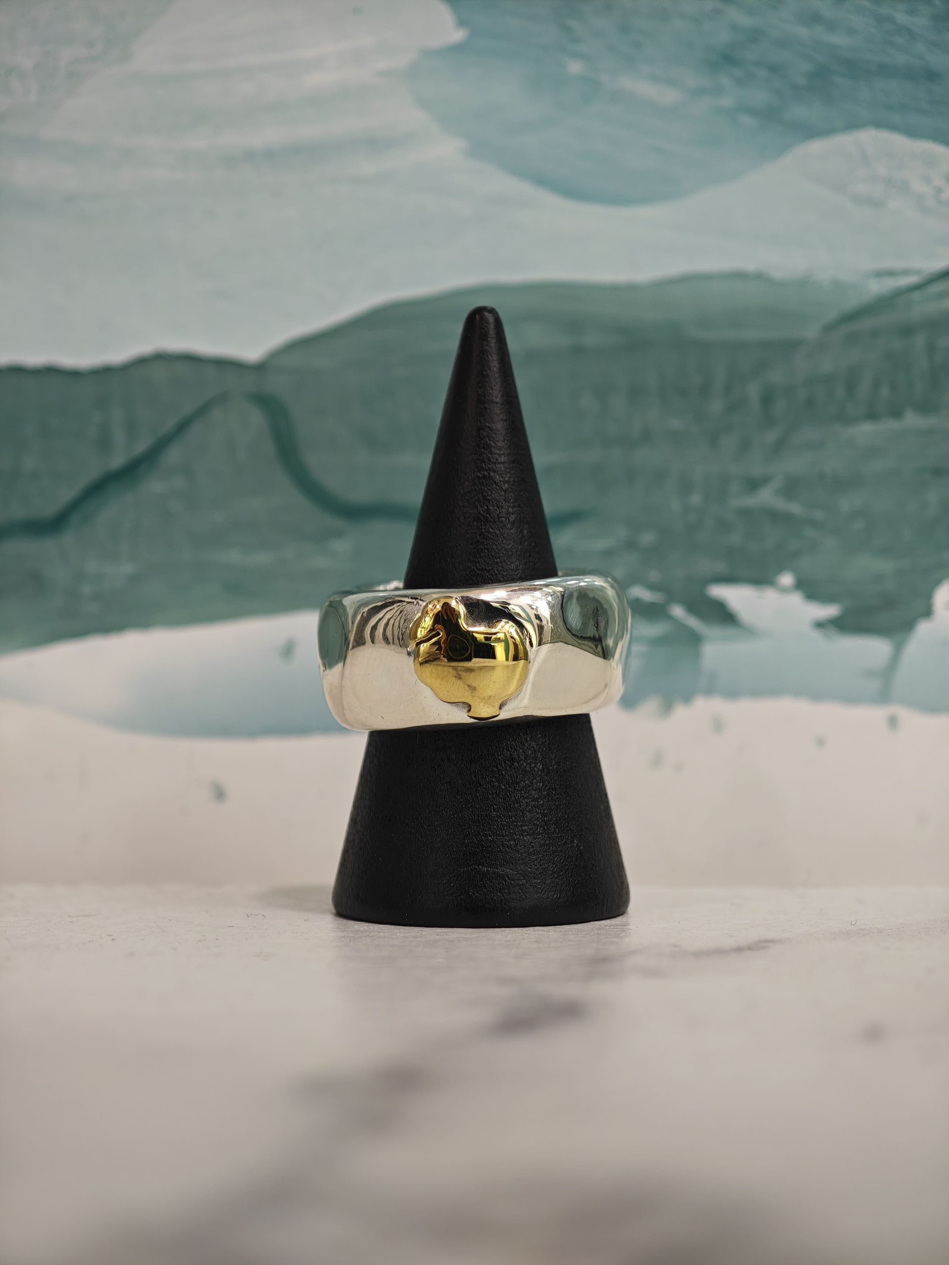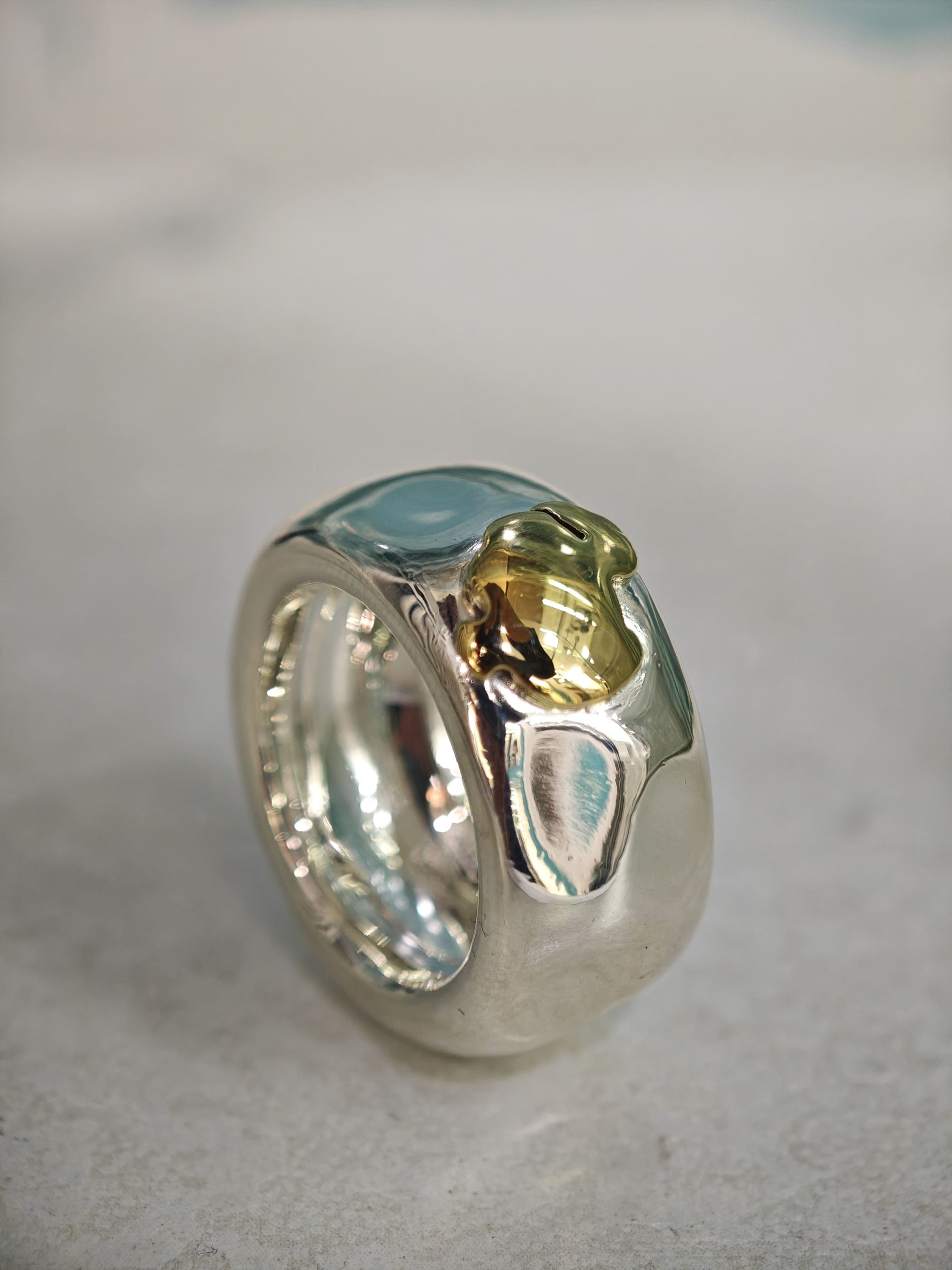 ANELLO IN ARGENTO 925 CON SIGILLO IN ORO GIALLO 18 KT, MARCHIO DODO