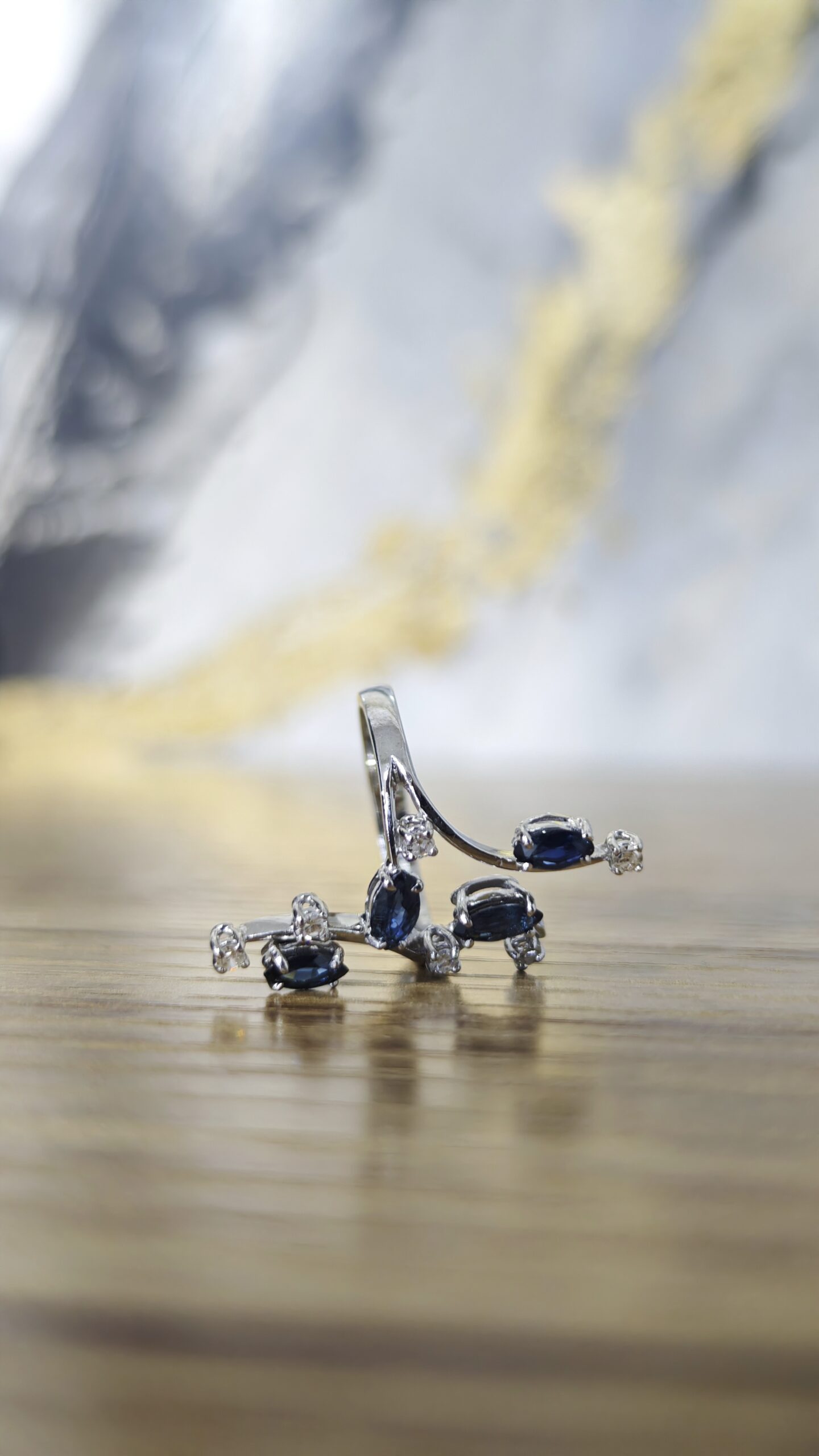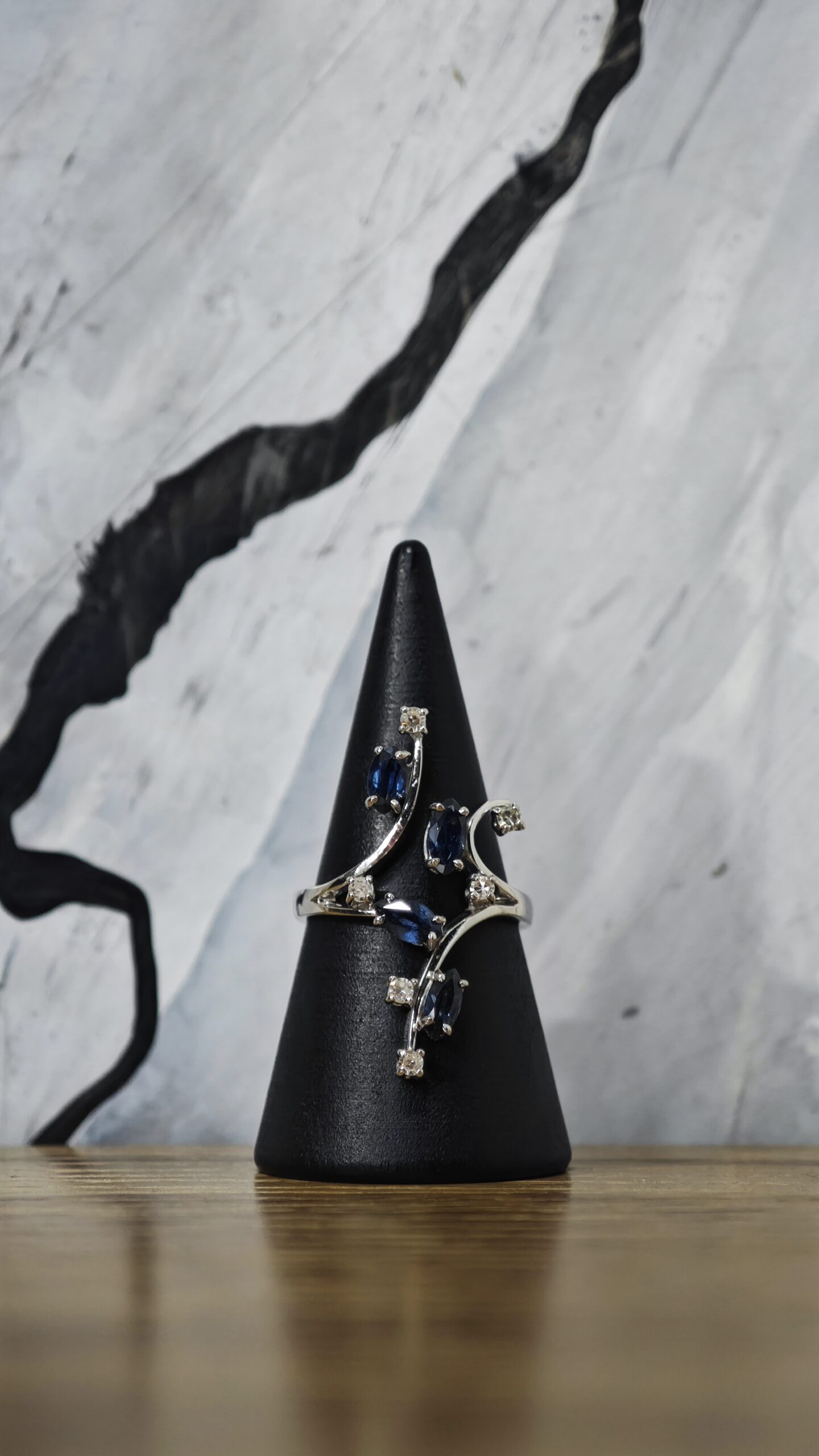 ANELLO IN ORO BIANCO 18 KT CON DIAMANTI HH 0,12 CARATI TOTALI E ZAFFIRI 0,76 CARATI TOTALI
