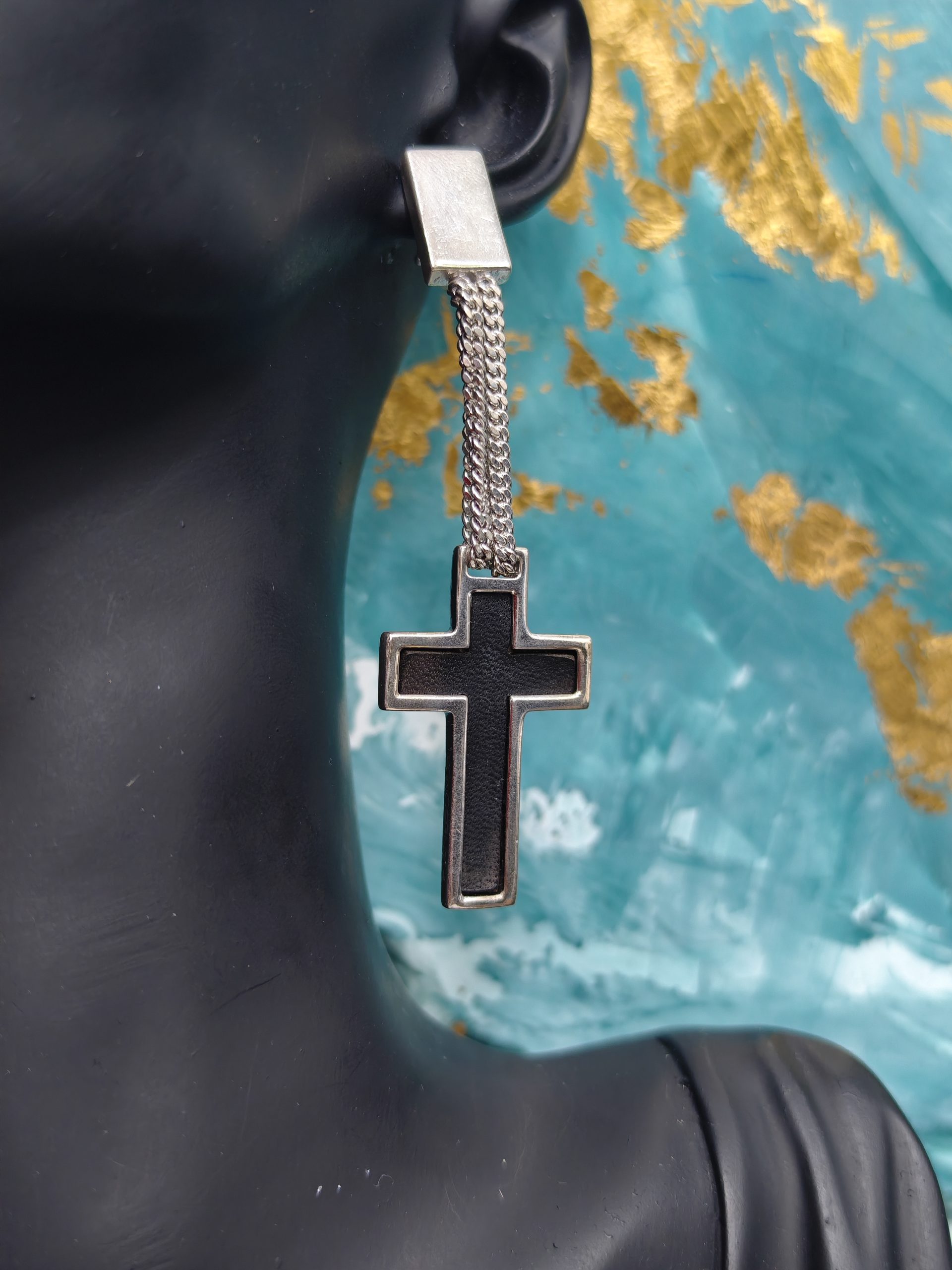 ORECCHINI IN ARGENTO 925 CON INTERNO CROCE IN PELLE, MARCHIO PIANEGONDA
